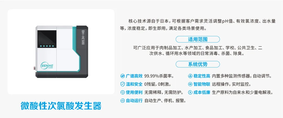 智能次氯酸发生器是本合智能在环保消毒领域的又一力作。该产品采用先进的电化学技术,能够高效、稳定地生成次氯酸水,具有广谱杀菌、无残留、对环境友好等优点。在医疗卫生、食品加工、水处理等多个领域,智能次氯酸发生器都展现出了卓越的应用效果,为公共卫生安全提供了有力保障。