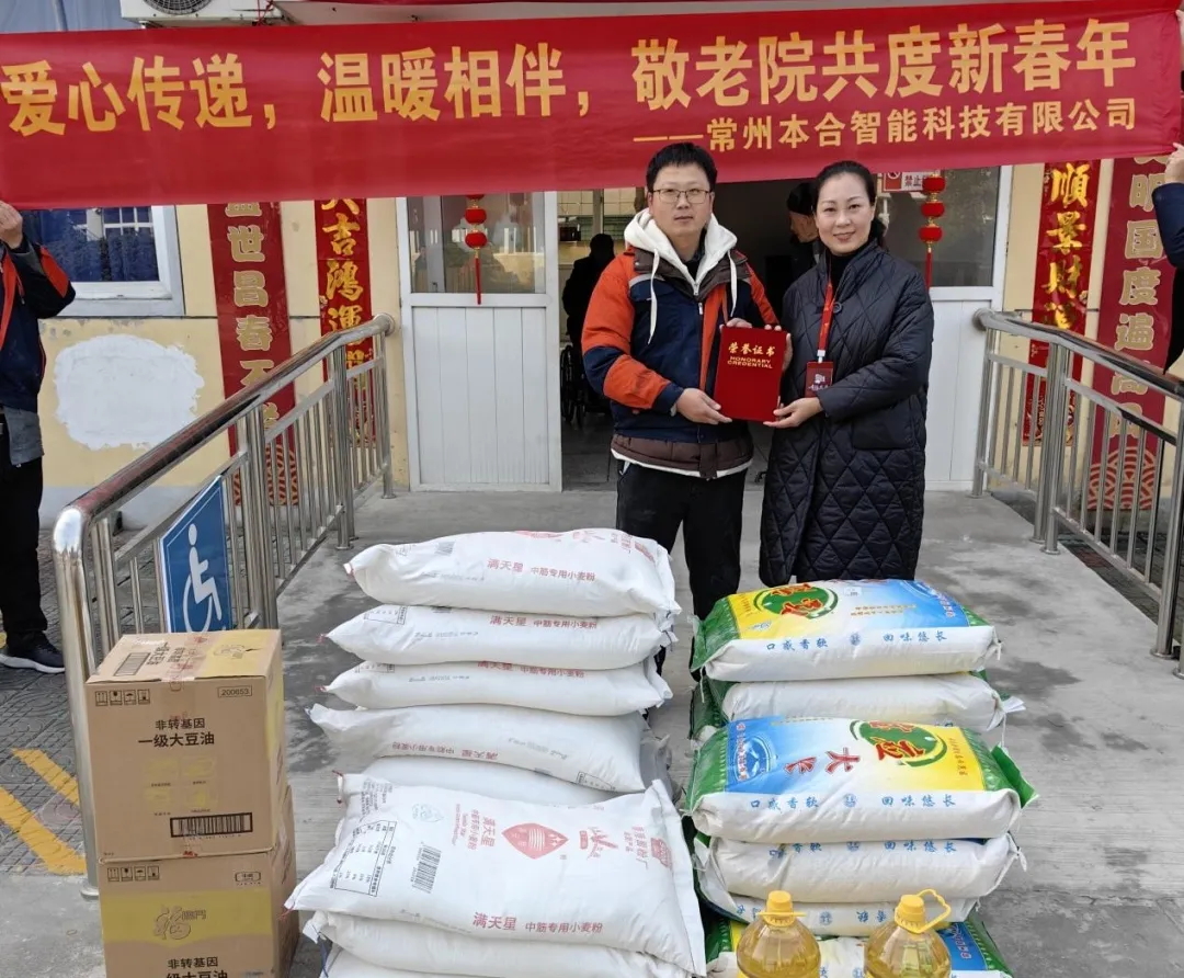 2025年1月22日,正值农历新年之际,本合智能公司慰问团队一行带着新年的祝福与关怀,来到了金坛区直溪镇敬老院,为这里的孤寡老人们送上了一份特别的节日礼物。 在敬老院里,本合智能公司的慰问团队受到了老...